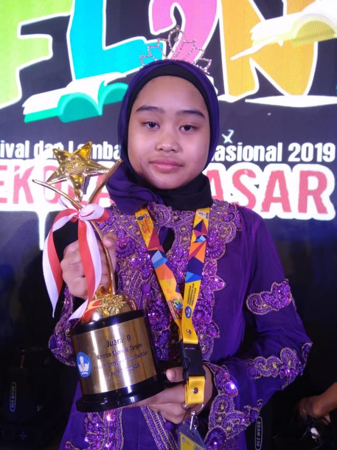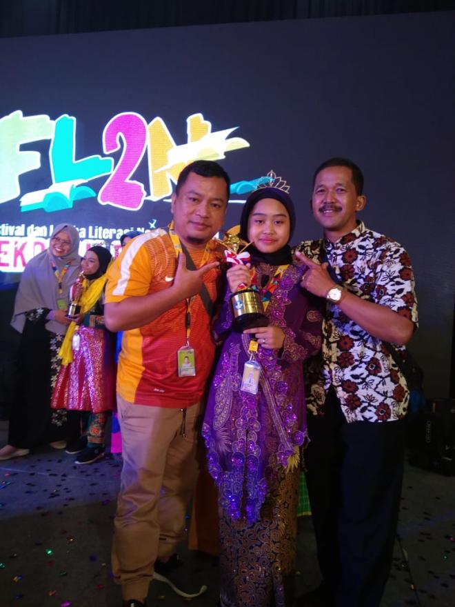 desagejagan.magelangkab.go.id - Ngizzatun Nisa' Siswi SD Negeri Gejagan Pakis, Kabupaten Magelang, berhasil memperoleh Juara II pada kategori lomba menulis cerita pendek dalam Festival dan Lomba Literasi Nasional (FL2N) Sekolah Dasar 2019 tingkat nasional. Festival tersebut diselenggarakan di Jakarta dan Tangerang pada 27-28 Juli 2019.
