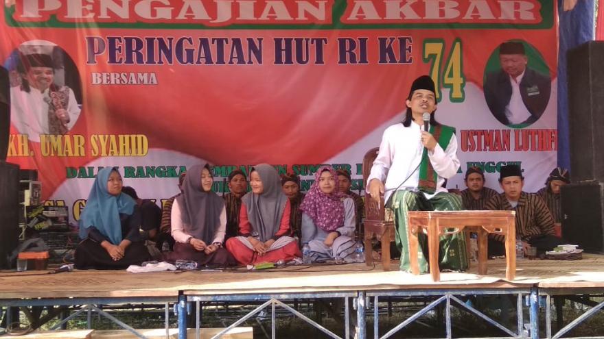 Desagejagan.magelangkab.go.id (Kamis, 22 Agustus 2019), Merdeka, Merdeka, Merdeka. Dalam mengisi peringatan Hari Kemerdekaan Indonesia yang ke-74 Desa Gejagan melakukan berbagai kegiatan, salah satunya dengan Pengajian Akbar dengan tema Menuju Sumber Daya Manusia Unggul, Indonesia Maju. Mauidhoh hasanah pengajian tersebut diisi oleh KH. Umar Said dan KH. Ustman Lutfi. Dalam tausiyahnya beliau berpesan bahwa “ Peringatan HUT RI yang ke-74 untuk mengingatkan jasa para pendahulu/pahlawan yang sudah rela mengorbankan harta dan nyawa hanya untuk meraih cita-cita bangsa Indonesia yaitu merdeka untuk itu generasi penerus harus mengisi kemerdakaan dengan kegiatan yang positif dan mendekatkan diri kepada Allah SWT. Dengan cara menjalankan perintahNYA dan menjauhi laranganNYA secara singkatnya. NKRI harga mati”